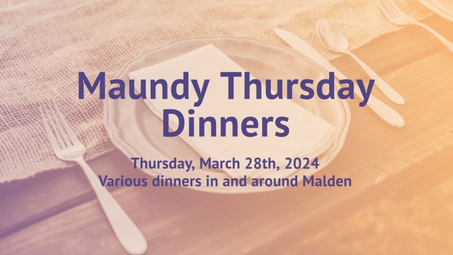 Maundy Thursday dinners are a way that people come together in community to not only get to know each other better but to prepare our hearts for Good Friday and Easter. People from community City Church are hosting dinners at various times in the evening of Thursday, March 28th, in and around Malden. Come join us for some great food and conversation. To sign up to attend a dinner, please email info@communitycitychurch.org