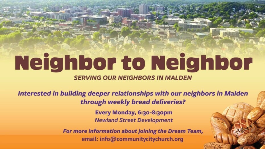 We came to Malden as a church to bless, serve, and love our neighbors. This includes meeting their material, relational, and spiritual needs. One of the needs in Malden is food insecurity. With our partnerships with local food organizations, we are able to do weekly deliveries of fresh bread to people and families living in the Newland Street Development, a neighborhood managed by the Malden Housing Authority.
